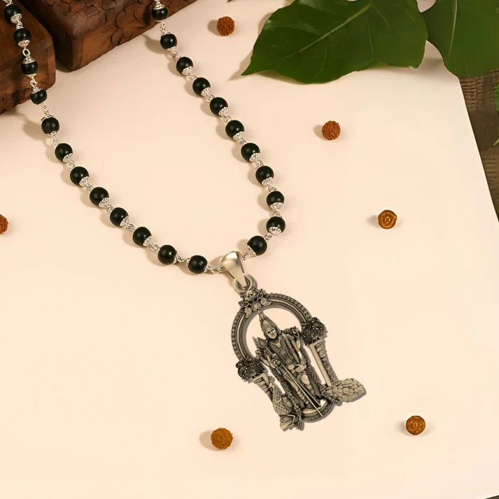 Divine Protection: Wearing the Karungali Malai with the Lord Murugan Pendant creates a shield of spiritual protection, guarding the wearer from negative energies and bringing peace of mind.
